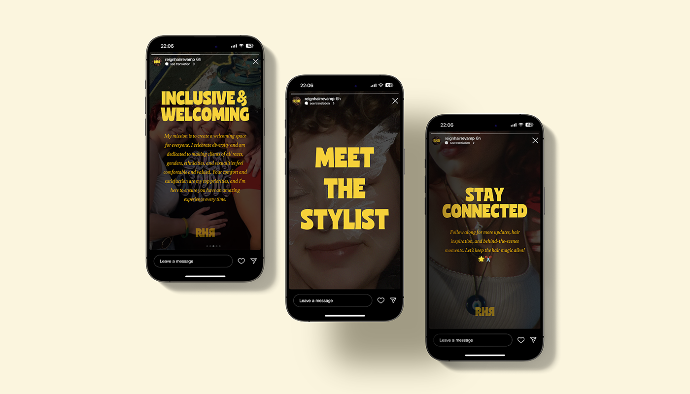 Reign Hair Revamp is more than just a hairstyling service—it's a reflection of Reign's bold, artistic vision. Her branding embodies her unique style, combining edgy elegance with a modern flair that sets her apart in the industry. From her logo to her social media presence, every element is designed to showcase her creativity and passion for self-expression. Reign's brand isn’t just about hair; it’s about empowering clients to embrace their individuality and step into the world with confidence.